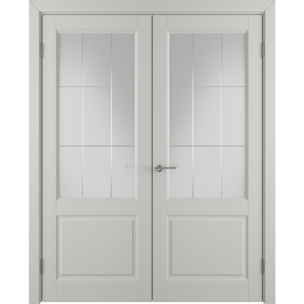 Двустворчатая распашная дверь Патриция светло-серая эмаль со стеклом